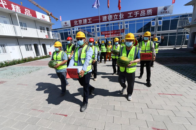 北京市已進入盛夏高溫時節(jié),防暑降溫工作直接關(guān)系到勞動者身體健康和企業(yè)生產(chǎn)安全。7月7日,由北京市總工會主辦的“最美勞動者 微笑帶回家”系列活動暨清涼送給首都建設者活動,在北京建工路橋集團通州數(shù)據(jù)中心項目舉行,北京建工路橋集團黨委書記王曉輝代表公司黨委、工會對建設者進行慰問,向奮戰(zhàn)在施工一線建設者們送去清涼及防疫物資和真摯問候。