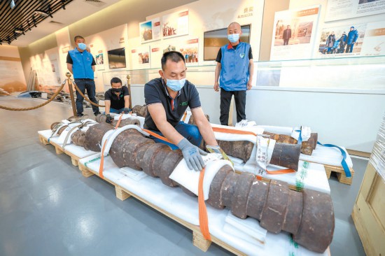 有了“腿”,神炮便“來去自如”了許多。之后,將用液壓拖車機(jī)械裝車,與館內(nèi)所有文物統(tǒng)一運(yùn)輸。