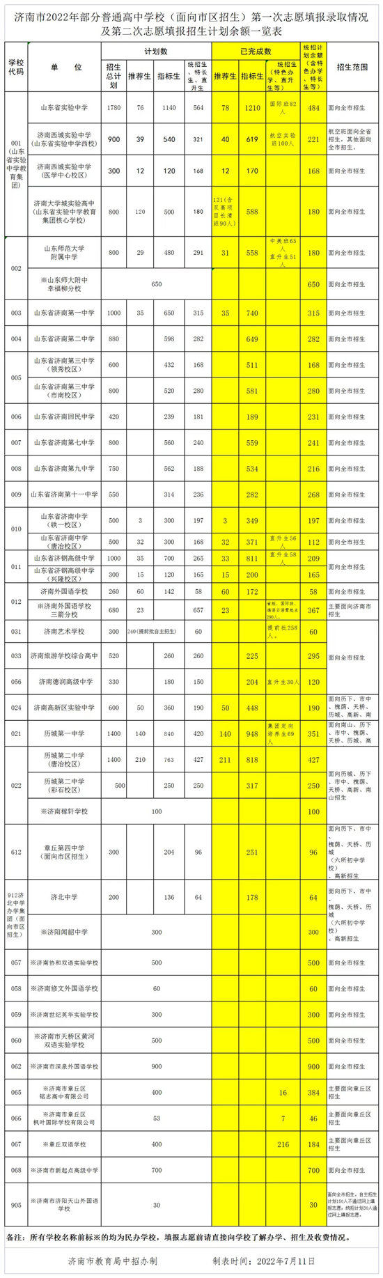 人民網濟南7月12日電(公雪)12日下午,濟南市教育局中招辦召開2022年高中階段學校招錄工作第二次新聞發(fā)布會。會上公布了第一批次志愿填報錄取情況、第二批次志愿填報說明、各招生學校剩余招生計劃。