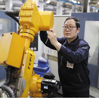 孫志強(qiáng)在記錄設(shè)備加工數(shù)據(jù)。