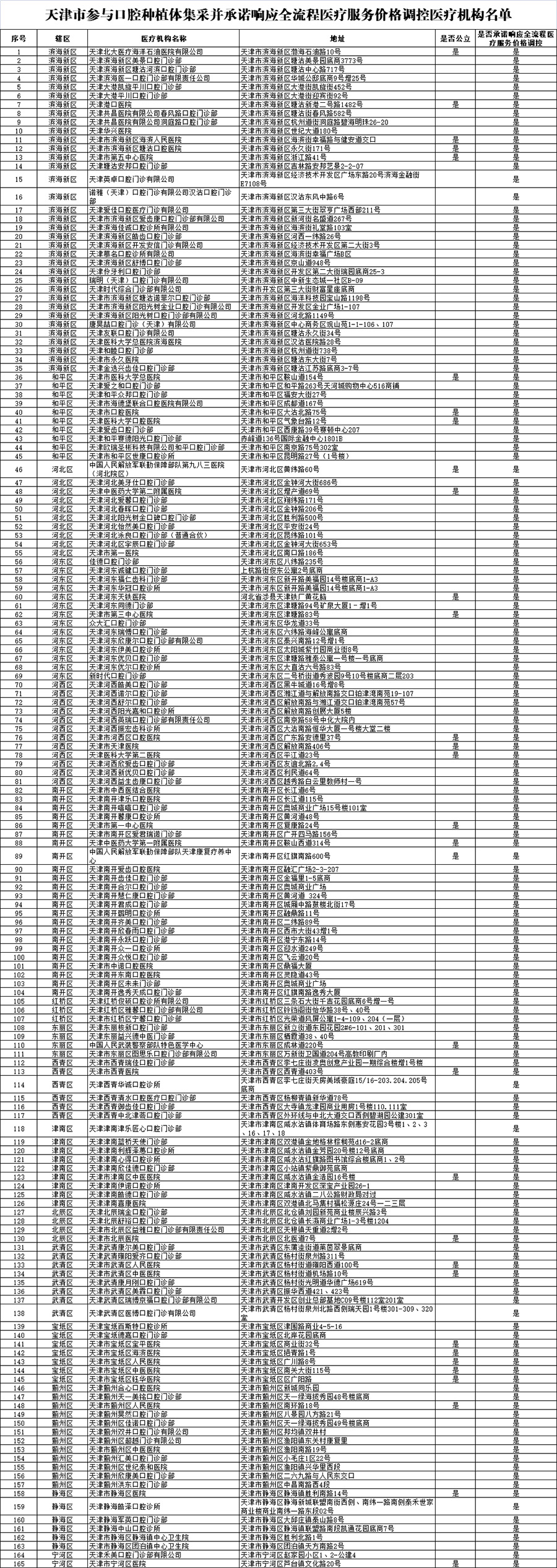 附件:天津市參與口腔種植體集采并承諾響應全流程醫(yī)療服務價格調控醫(yī)療機構名單