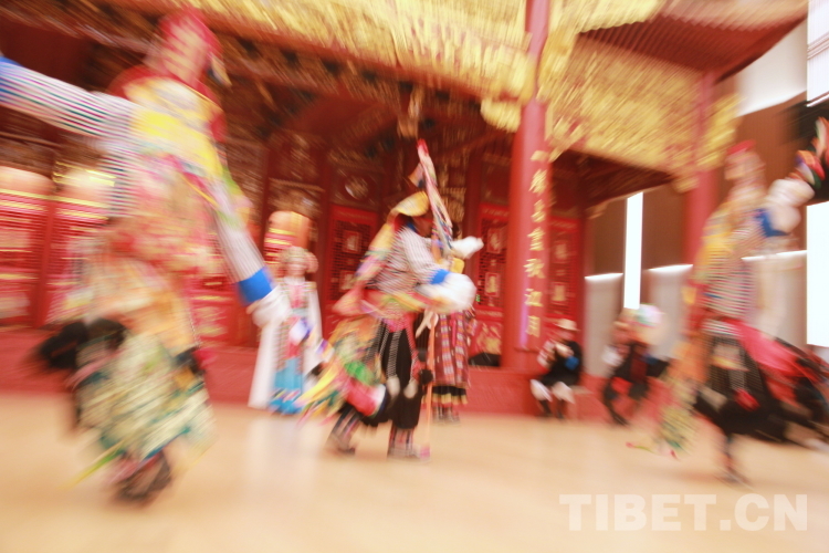 拉薩市城關(guān)區(qū)娘熱民間藝術(shù)團(tuán)在藏戲這一非物質(zhì)文化遺產(chǎn)瑰寶的傳承中碩果累累,擁有西藏自治區(qū)級、拉薩市級和拉薩市城關(guān)區(qū)級多位非遺傳承人,是西藏自治區(qū)100多個民間劇團(tuán)中唯一一個能夠完整表演“八大藏戲”的團(tuán)體。圖為拉薩市城關(guān)區(qū)娘熱民間藝術(shù)團(tuán)表演的藏戲開場《溫巴頓》片段 攝影:劉莉