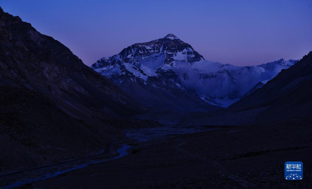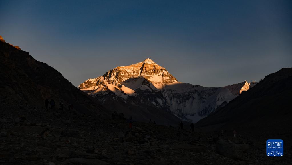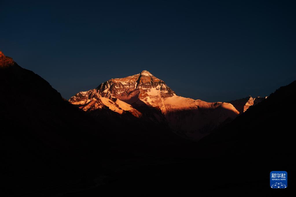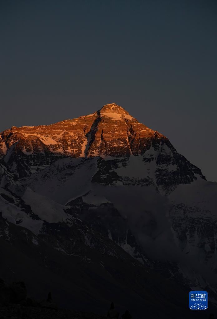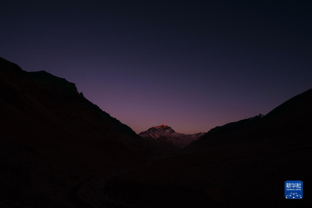 6月4日,最后一抹陽(yáng)光即將從珠峰頂上消逝。新華社記者 費(fèi)茂華 攝