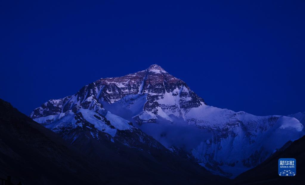 6月4日拍攝的太陽(yáng)完全落山之后的珠峰。新華社記者 費(fèi)茂華 攝