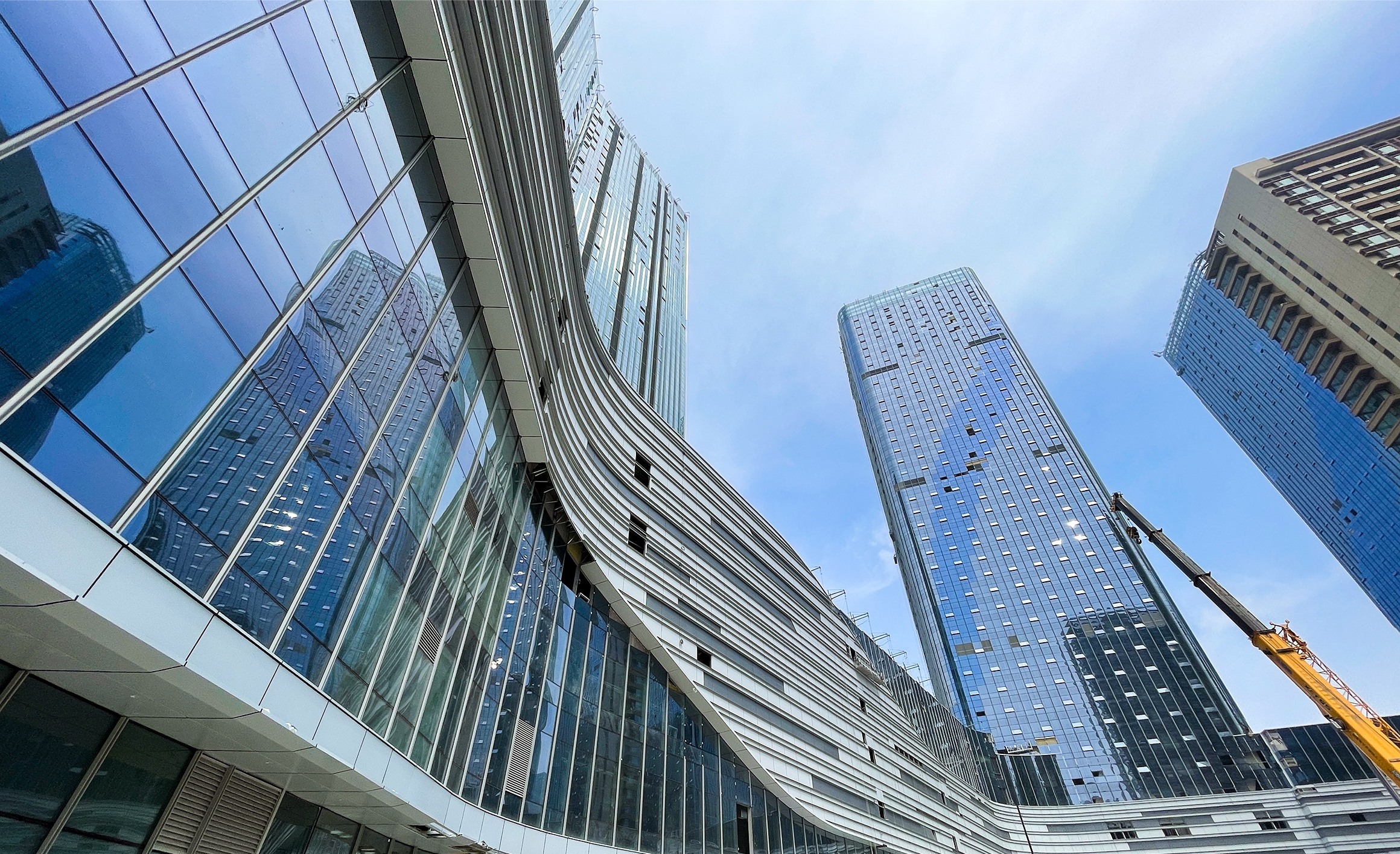 在山西建投·祥澐國際項目建設(shè)現(xiàn)場,綠色圍擋里,大型機(jī)械正在奮力作業(yè),施工人員忙著主樓外幕墻施工,呈現(xiàn)出一派熱火朝天的場景。