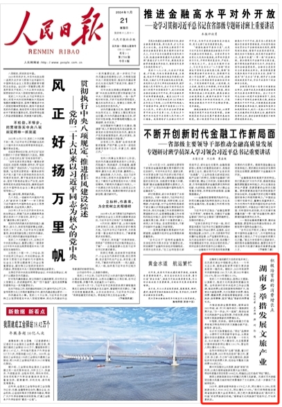 人民日報頭版關注:湖南多舉措發(fā)展文旅產(chǎn)業(yè)