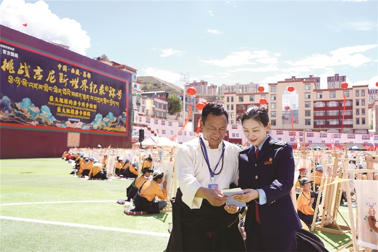 商報(bào)訊(通訊員 德西卓瑪 記者 芮怡星)當(dāng)1138名畫師在西藏昌都市卡若區(qū)共同創(chuàng)造“最大規(guī)模唐卡課程”和“最大規(guī)模的唐卡同步繪制”兩項(xiàng)吉尼斯世界紀(jì)錄時(shí),一抹“稅務(wù)藍(lán)”也悄然融入這片藝術(shù)的海洋。國(guó)家稅務(wù)總局昌都市稅務(wù)局“卓卓稅宣小分隊(duì)”穿梭其間,將精準(zhǔn)的稅惠政策送至活動(dòng)現(xiàn)場(chǎng),為這場(chǎng)文化盛事增添了一抹特別的“稅務(wù)藍(lán)”。