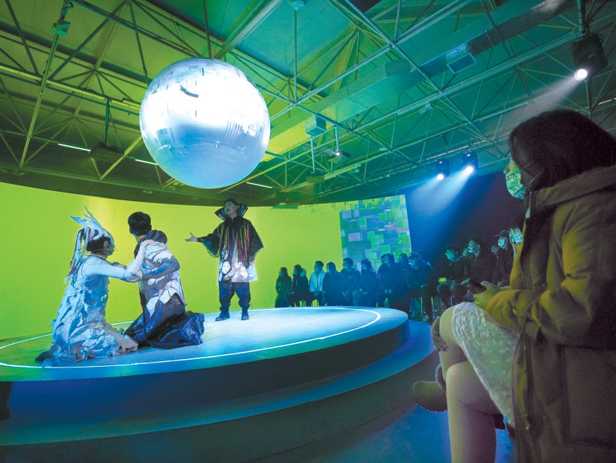 后浸沒式戲劇《畫皮2677》在繁星戲劇村全新的場景里上演,沒有舞臺(tái),也沒有座位,取而代之的是在“未來”和“古風(fēng)”之間穿梭變換的情境。觀眾進(jìn)入劇場的同時(shí)成為更具有參與感和體驗(yàn)感的“戲劇玩家”。本報(bào)記者 方非攝