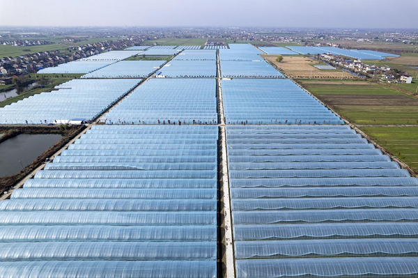 12月11日航拍的江蘇省泰州市姜堰區(qū)蔣垛鎮(zhèn)鹽大村草莓種植基地(央廣網(wǎng)發(fā) 顧繼紅 攝)