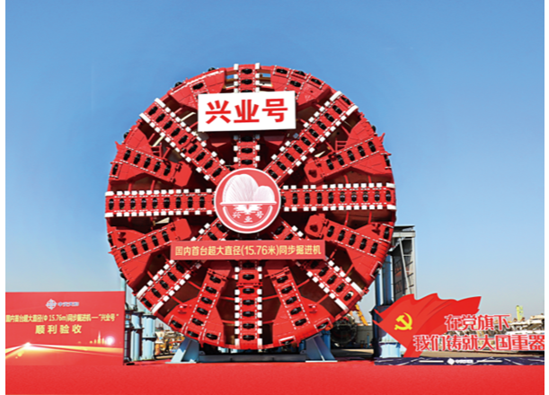 珠海興業(yè)快線隧道工程是未來連通港珠澳大橋和深中通道,把珠海市打造成為“粵港澳交通樞紐”的重要工程。盾構(gòu)隧道長度僅1740米,但地質(zhì)情況極為復(fù)雜,其中:硬巖段占比超過70%,被稱“地質(zhì)博物館”,且為首個國內(nèi)直徑最大雙層疊落盾構(gòu)工程,雙層疊落長約604米,盾構(gòu)法施工面臨不少世界級難題。為順利完成這項重大工程,中交天和立足自主研發(fā),著眼科技創(chuàng)新,為適應(yīng)在硬巖地質(zhì)中提高掘進速度,實現(xiàn)隧道掘進和管片拼裝同步施工,成功研制中國首臺超大直徑同步掘進機“興業(yè)號”。該掘進機國產(chǎn)化率達98%以上、刀盤直徑15.76米,全長超130米,攻克了許多難以想象的世界級難題。