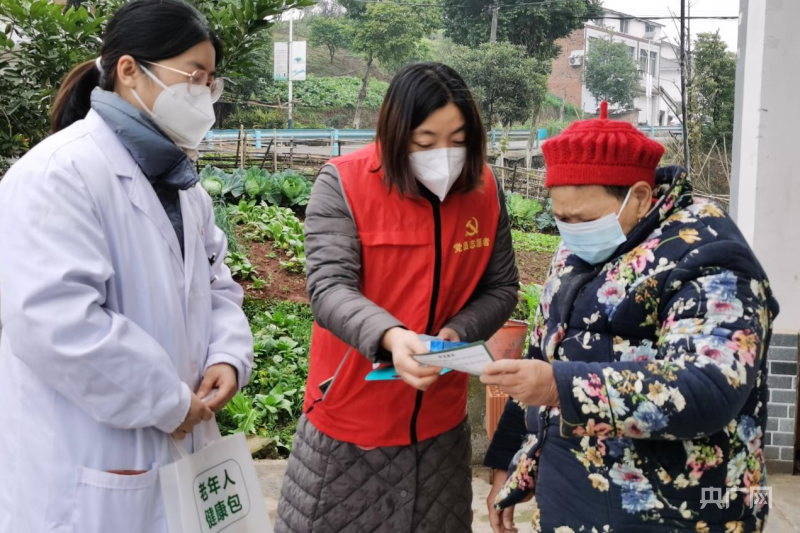 各個鎮(zhèn)組織村干部與醫(yī)護(hù)人員給農(nóng)村老人送上健康包(央廣網(wǎng)發(fā) 渝北區(qū)融媒體中心供圖)