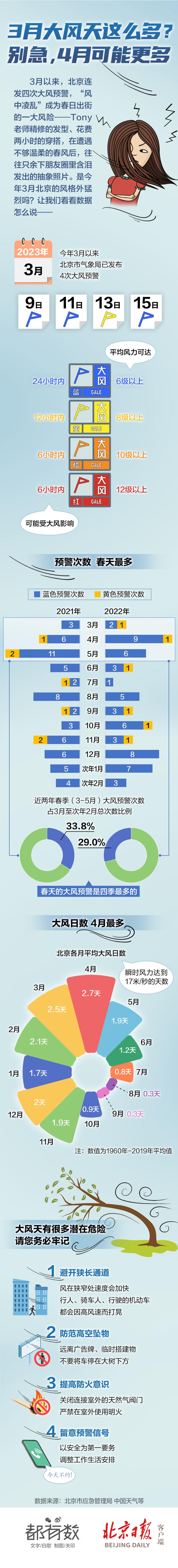 3月以來,北京連發(fā)四次大風(fēng)預(yù)警,“風(fēng)中凌亂”成為春日出街的一大風(fēng)險(xiǎn)——Tony老師精修的發(fā)型、花費(fèi)兩小時(shí)的穿搭,在遭遇不夠溫柔的春風(fēng)后,往往只余下朋友圈里含淚發(fā)出的抽象照片。是今年3月北京的風(fēng)格外猛烈嗎?讓我們看看數(shù)據(jù)怎么說!