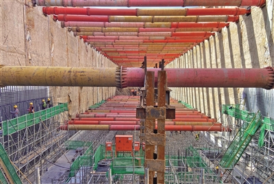 在北京地鐵22號線(平谷線)管莊站項(xiàng)目現(xiàn)場,在地下31米,工人們正在進(jìn)行鋼筋綁扎、混凝土澆筑工作,300余名工人正在為該車站主體結(jié)構(gòu)施工完成作出努力。