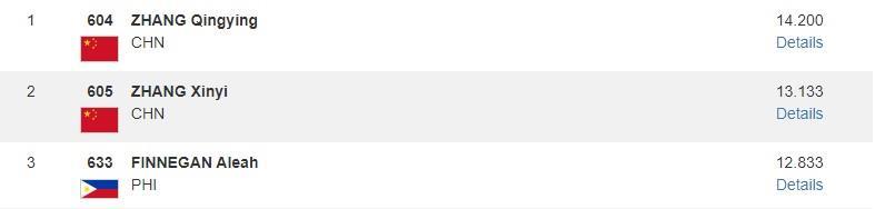 女子平衡木項(xiàng)目,中國隊(duì)包攬冠亞軍。張清穎以14.200分獲得冠軍,張欣怡以13.133分收獲亞軍。