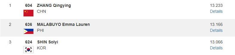 女子自由操項(xiàng)目,張清穎以13.233分再奪一枚金牌。另一名中國選手邱祺緣以12.133分排名第七。