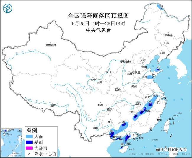 預(yù)計(jì),6月25日14時(shí)至26日14時(shí),安徽南部、江蘇南部、江西中北部、湖南南部、廣西大部、廣東西南部、海南島等地部分地區(qū)有大到暴雨,其中,廣西東南部沿海、廣東西南部等地部分地區(qū)有大暴雨(100~140毫米)。上述部分地區(qū)伴有短時(shí)強(qiáng)降水(最大小時(shí)降雨量20~50毫米,局地可超過60毫米),局地有雷暴大風(fēng)等強(qiáng)對流天氣。