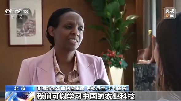非洲綠色革命聯(lián)盟主席 阿格尼絲·卡利巴塔:非洲有大量的人從事農(nóng)業(yè),我們可以學(xué)習(xí)中國的農(nóng)業(yè)科技,中國灌溉率高達(dá)51%,農(nóng)業(yè)生產(chǎn)的高效性值得我們借鑒。