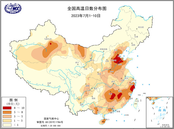 中國天氣網(wǎng)訊 今年7月上旬,我國高溫愈演愈烈,全國平均氣溫達到22.88℃,有超過400個國家級站點經(jīng)歷了1961年以來最熱的7月上旬。華北、黃淮多地高溫日數(shù)達到5~8天,其中河北東部、山東西北部一些地方出現(xiàn)了8~9天高溫。南方高溫進入7月也開始發(fā)力,江南不少地方高溫日數(shù)達到了5天以上,湖南、江西、浙江、福建等一些地方甚至高溫全勤。