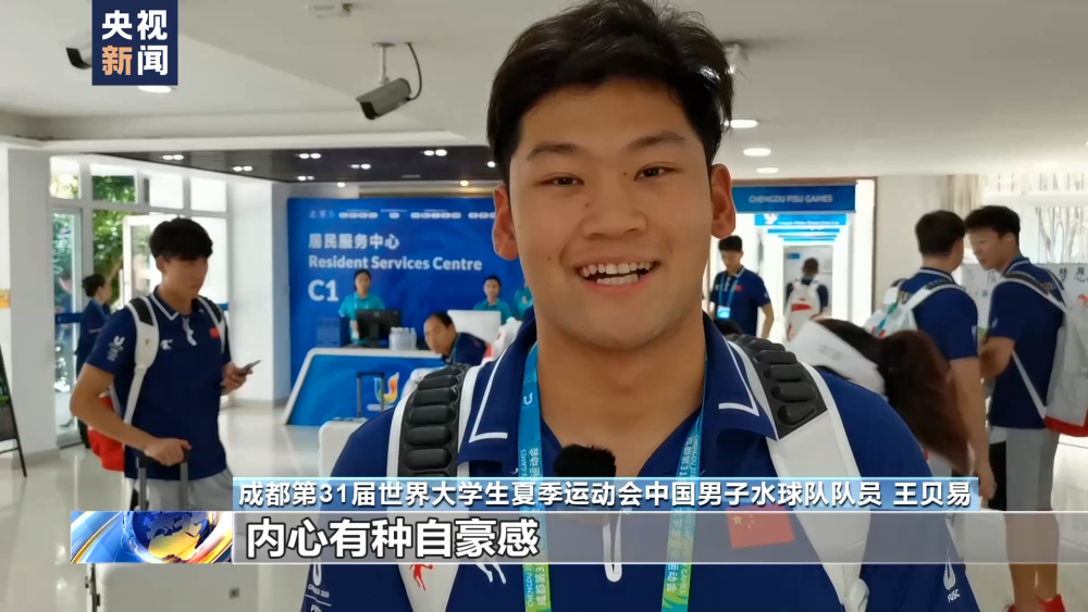 成都第31屆世界大學(xué)生夏季運(yùn)動(dòng)會(huì)中國男子水球隊(duì)隊(duì)員 王貝易:外面已經(jīng)看到我們中國隊(duì)的國旗了,內(nèi)心有種自豪感。