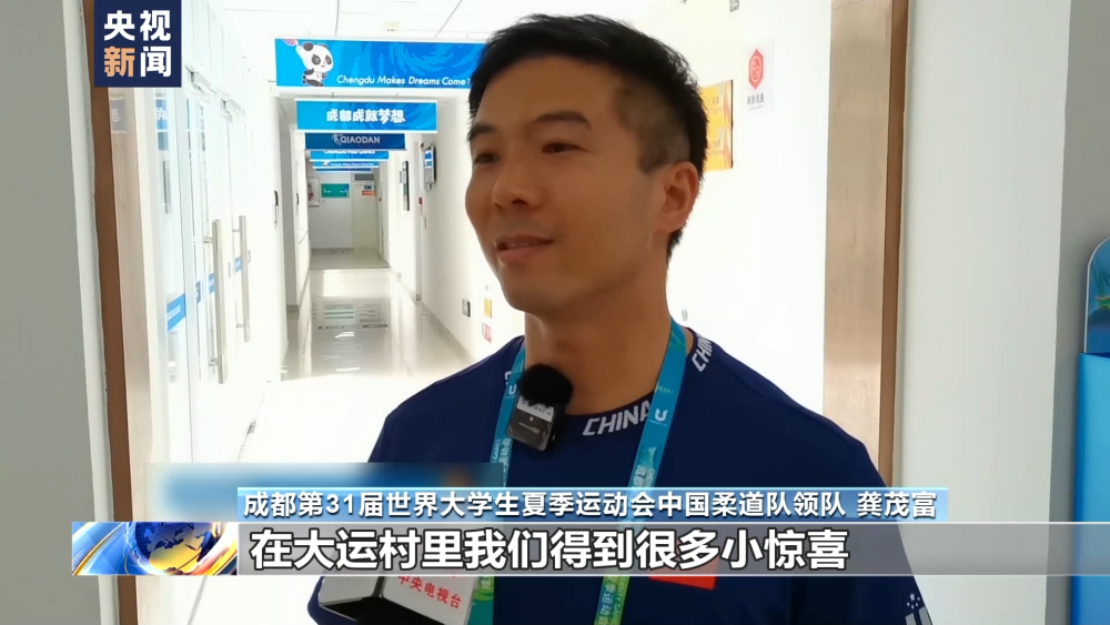 成都第31屆世界大學(xué)生夏季運(yùn)動(dòng)會(huì)中國柔道隊(duì)領(lǐng)隊(duì) 龔茂富:在大運(yùn)村里,我們得到很多小驚喜,我們的隊(duì)員都十分開心。