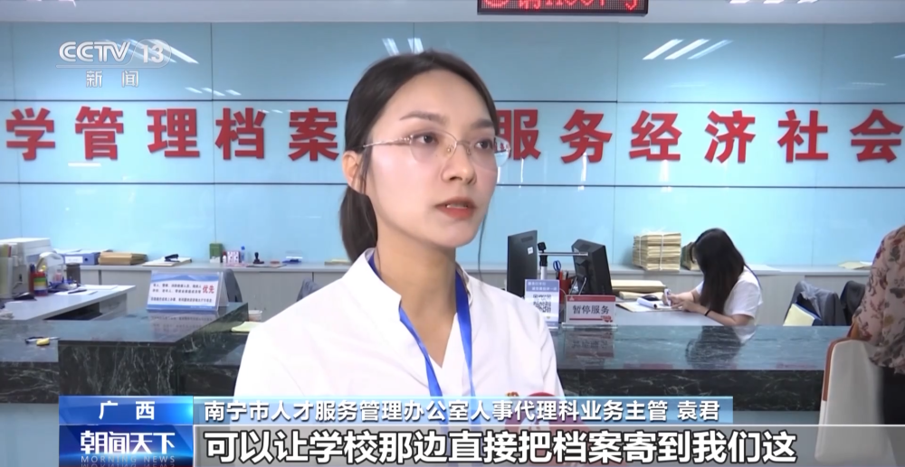 南寧市人才服務(wù)管理辦公室人事代理科業(yè)務(wù)主管 袁君:可以讓學(xué)校那邊直接把檔案寄到我們這,我們進(jìn)行一個(gè)免費(fèi)的托管,不需要學(xué)生本人再提供任何的工作材料到現(xiàn)場或者是在網(wǎng)上再辦理任何檔案接收手續(xù)。