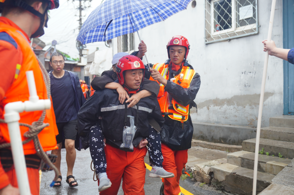 同日13時(shí)02分,屯佃小型消防站出動(dòng)1車6人,前往蘇家坨鎮(zhèn)柳林村大隊(duì)后側(cè)進(jìn)行救援。現(xiàn)場(chǎng)積水將近漫過成人膝蓋,救援人員給兒童、孕婦穿上救生衣,給每位群眾派發(fā)救生圈,帶領(lǐng)群眾在安全繩的保護(hù)和牽引下,轉(zhuǎn)移至安全區(qū)域。此次救援共疏散群眾11人,其中包括1名懷胎9月的孕婦、4名兒童。最小的兒童年僅6歲,在積水區(qū)域難以步行,消防人員遂背起兒童前進(jìn)。確?,F(xiàn)場(chǎng)無其他危險(xiǎn)后,小型消防站隊(duì)員才帶隊(duì)返回。