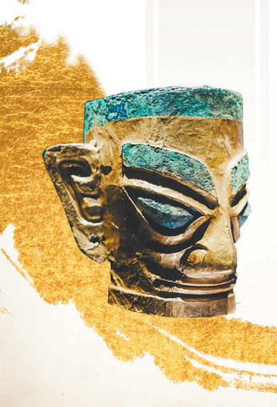 金面罩青銅人頭像。圖為三星堆博物館提供