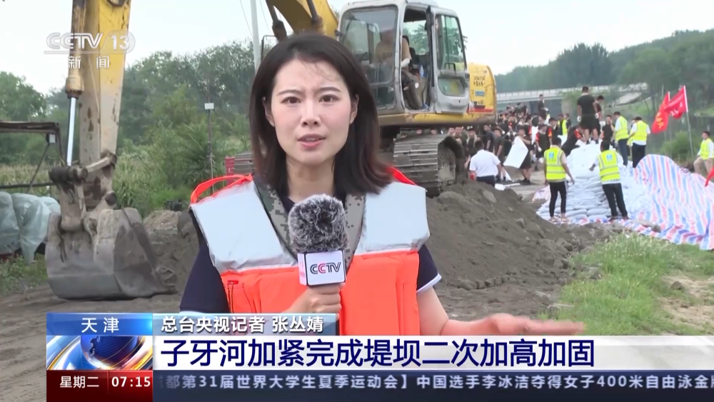 總臺(tái)央視記者 張叢婧:可以看到,現(xiàn)場(chǎng)的500多名搶險(xiǎn)救援人員正在對(duì)這段大堤進(jìn)行持續(xù)加高加固作業(yè)。筑牢防洪堤壩,保障洪水繞城而走,安全有序入海。