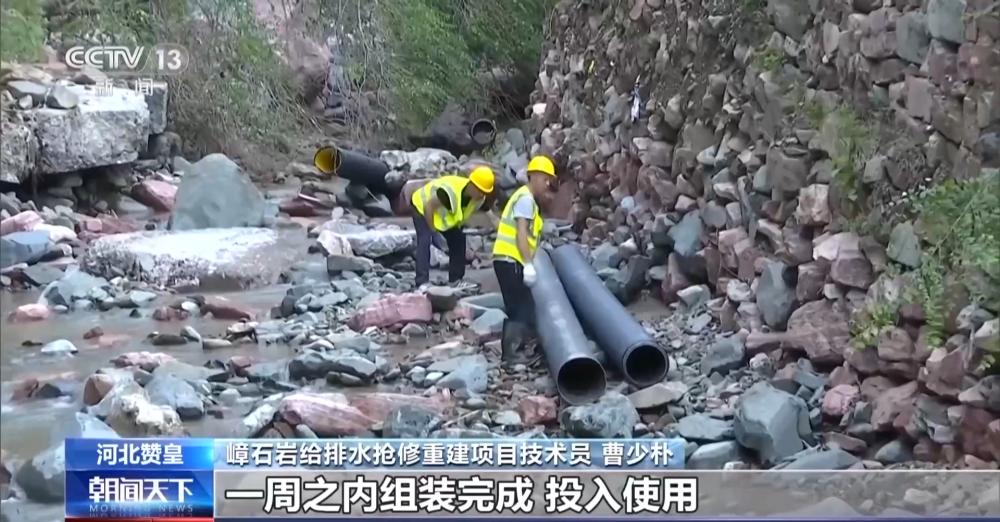 嶂石巖給排水搶修重建項目技術員 曹少樸:我們現(xiàn)在投入大量的工人,還有管理人員,現(xiàn)在是三班倒,在緊急搶修中,一周之內(nèi)組裝完成,投入使用。