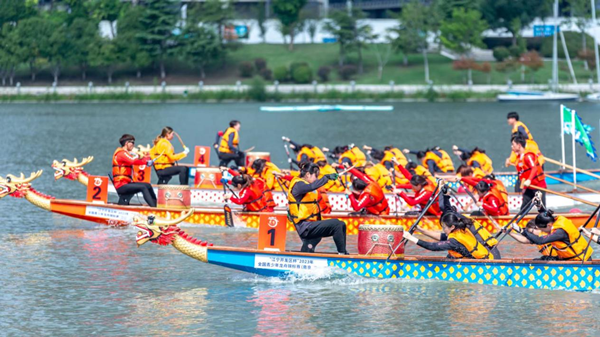 據(jù)了解,早在2021年,南京市體育集團(tuán)與江寧開發(fā)區(qū)共同打造的國(guó)家級(jí)水上運(yùn)動(dòng)項(xiàng)目——帆船訓(xùn)練基地落戶九龍湖國(guó)際企業(yè)總部園。今年端午節(jié)當(dāng)天,第二十屆南京市外商投資企業(yè)龍舟邀請(qǐng)賽在江寧百家湖拉開戰(zhàn)幕,在寧外企揚(yáng)子巴斯夫、菲尼克斯電氣、西門子數(shù)控、舍弗勒等16支參賽隊(duì)伍激情揮槳、奮勇爭(zhēng)先。