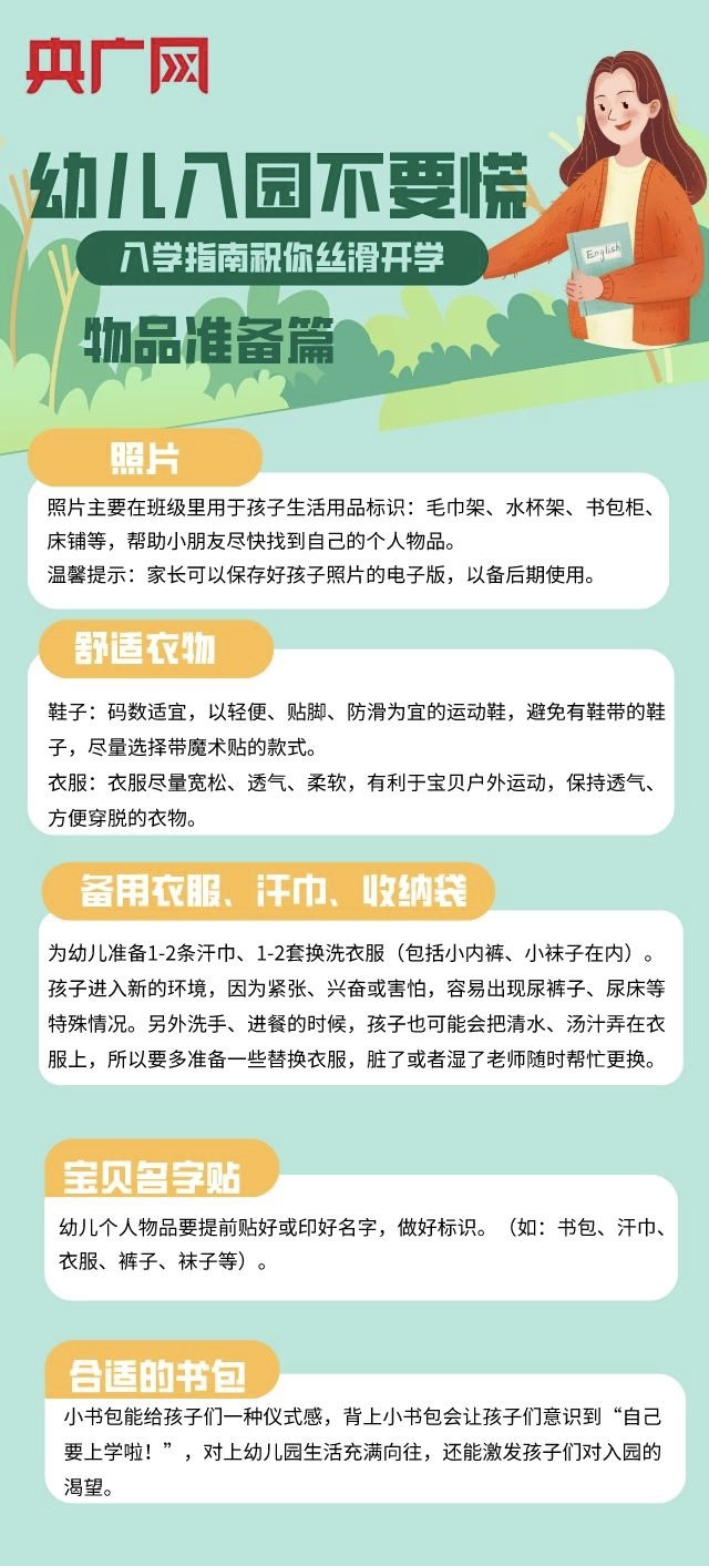 央廣網(wǎng)北京8月27日消息 幼兒園是人生的第一所學校,在這里,孩子們將開啟真正的學習生活和社會生活。可以說,這一階段對于孩子的性格塑造和習慣養(yǎng)成都有著十分重要的影響。那么幼兒入園前,新手爸媽應(yīng)該做好哪些準備工作呢?別慌,這份入學指南請收藏!