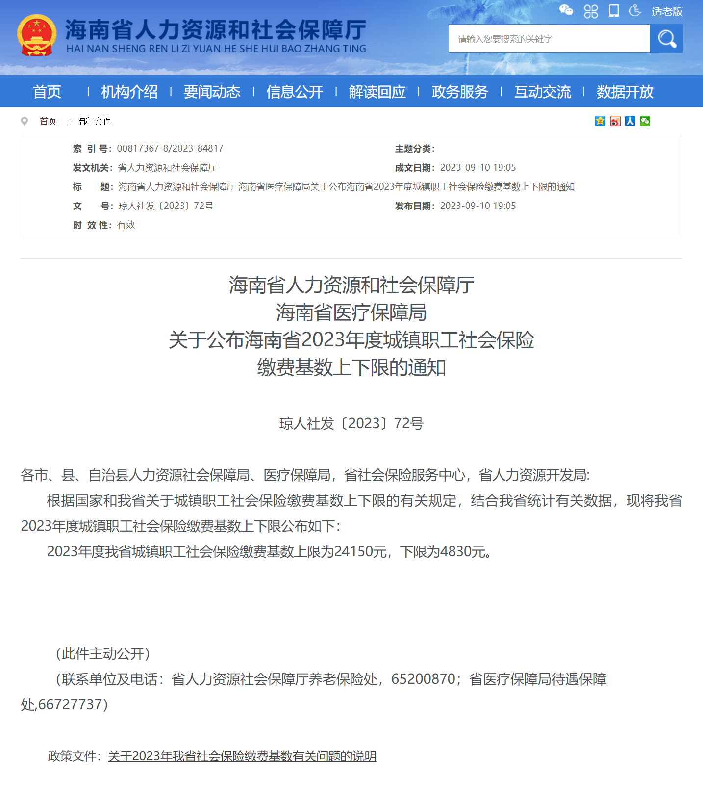2023年海南社保繳費(fèi)基數(shù)調(diào)整 上限24150元下限4830元