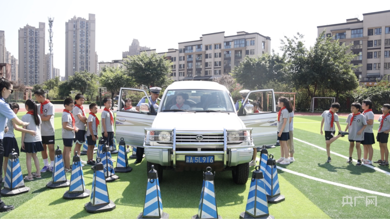 交巡警進校園上“安全課” 萌娃們沉浸式體驗汽車盲區(qū)避險
