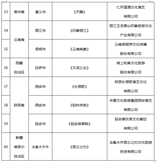 共40個!全國旅游演藝精品名錄入選項目名單出爐