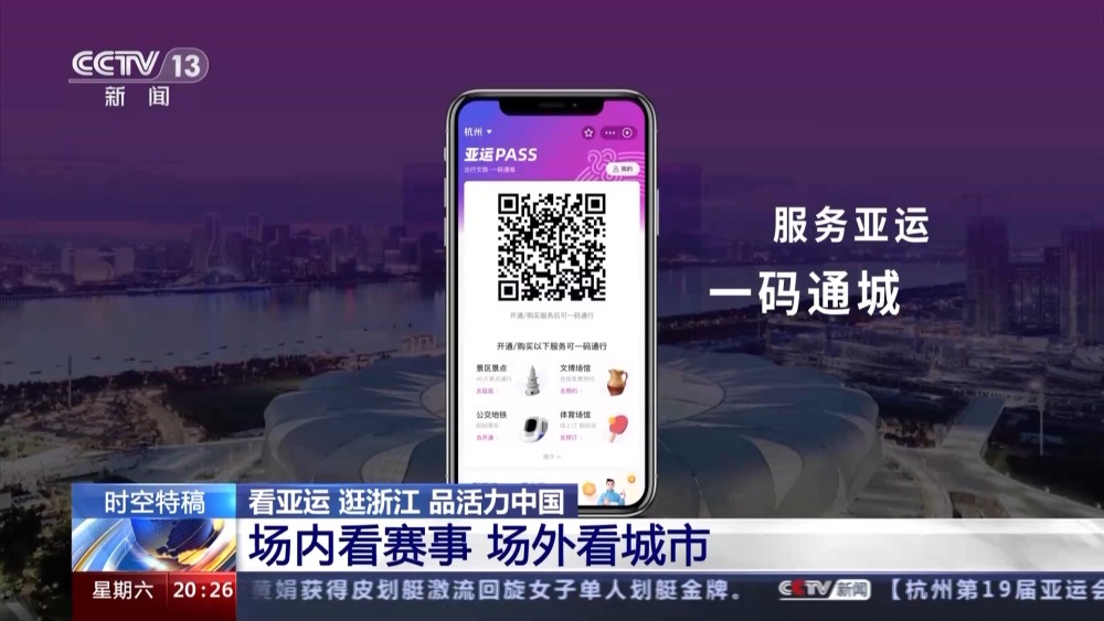 這樣細(xì)致、貼心的理念已經(jīng)滲透到了杭州公共服務(wù)的方方面面。還有更方便的,您看我手上這個(gè)二維碼叫亞運(yùn)pass碼,現(xiàn)在我們只要通過這一個(gè)二維碼,就可以乘公交、乘地鐵、景區(qū)入園等等功能,不用再在各種不同的二維碼之間來回切換了。