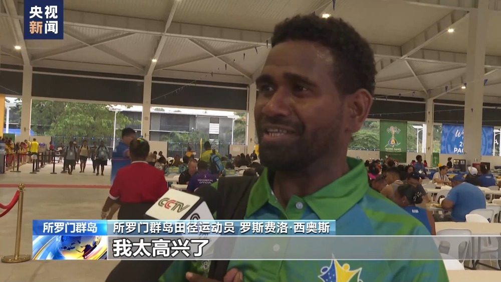 所羅門(mén)群島田徑運(yùn)動(dòng)員 羅斯費(fèi)洛·西奧斯:我不知道應(yīng)該怎么說(shuō),我太高興了,因?yàn)橐郧拔覀兌际窃诓莸厣嫌?xùn)練的,而現(xiàn)在我能在跑道上跑步了,所以我真誠(chéng)地感謝中國(guó)政府,這對(duì)我來(lái)說(shuō)也是田徑事業(yè)和人生的新篇章。