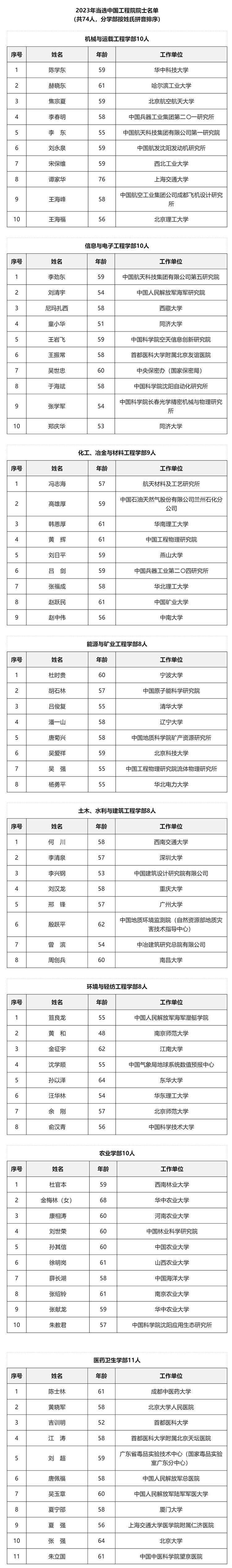 2023年新當(dāng)選中國(guó)工程院院士名單
