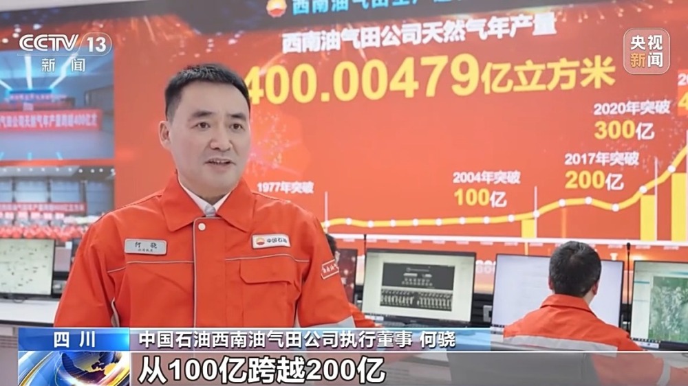 中國(guó)石油西南油氣田公司執(zhí)行董事 何驍:從100億跨越200億,我們用了13年的時(shí)間,從200億到建成300億戰(zhàn)略大氣區(qū)僅用3年,今年上產(chǎn)400億,占同期全國(guó)天然氣產(chǎn)量的1/5,離實(shí)現(xiàn)2025年上產(chǎn)500億方的目標(biāo)又近了一步。
