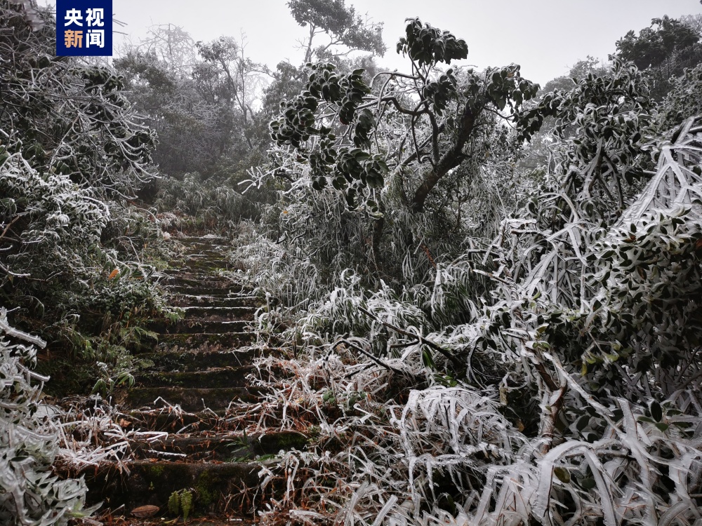 受天氣影響,廣西大明山半山腰出現(xiàn)道路結(jié)冰的情況,請(qǐng)廣大游客注意安全。