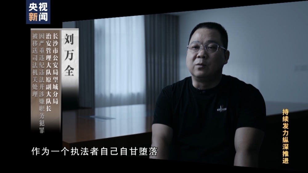 長沙市公安局望城分局治安管理大隊(duì)原副大隊(duì)長 劉萬全:總共送了兩萬三還是兩萬五千塊錢。作為一個執(zhí)法者,自己自甘墮落,為了這些蠅頭小利,貪小利貪小便宜,沒有守住紀(jì)律的、法律的底線。