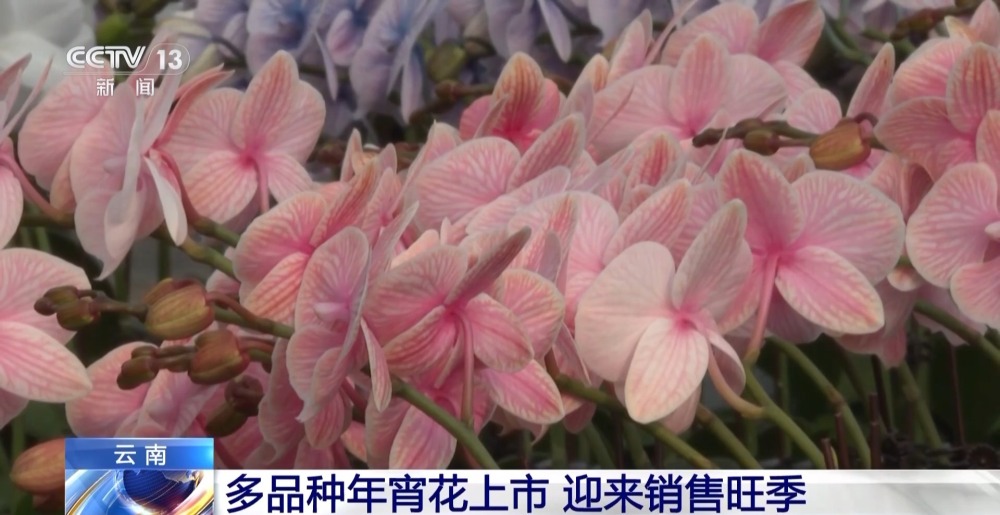 在云南,不同類型的年宵花也開(kāi)始大量上市。在玉溪江川區(qū)九溪鎮(zhèn)的花卉大棚里,整齊擺放的大花蕙蘭競(jìng)相開(kāi)放。大花蕙蘭可單獨(dú)擺放,也可制作成胸花等小型花藝,特別是瓶插期長(zhǎng)達(dá)45天,成為這段時(shí)間的暢銷花。
