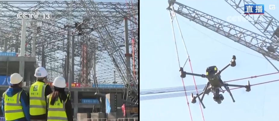 總臺記者 韓志濤:施工當(dāng)中要在高空中定位,并且多臺液壓機(jī)同時提升,誤差要控制在3毫米以內(nèi),這樣的精度是如何把控的?屋蓋上空有無人機(jī)在飛行,它在完成攝影的同時,會同步按照規(guī)劃好的航測路線,直接構(gòu)建屋蓋網(wǎng)架的高精度三維模型,同時完成實體與數(shù)字模型的精準(zhǔn)對接。這些鋼梁上都有一個應(yīng)變傳感器,它是一個診斷小能手,可以為屋蓋結(jié)構(gòu)提供全天候監(jiān)測診斷服務(wù),通過精準(zhǔn)“把脈”保證屋蓋網(wǎng)架結(jié)構(gòu)從施工到運營的數(shù)據(jù)安全。施工方還創(chuàng)建了規(guī)劃設(shè)計統(tǒng)籌、目標(biāo)工期管控、特殊工藝運用等“三大智囊平臺”,通過數(shù)字化、智能化全力推進(jìn)機(jī)場建設(shè)。
