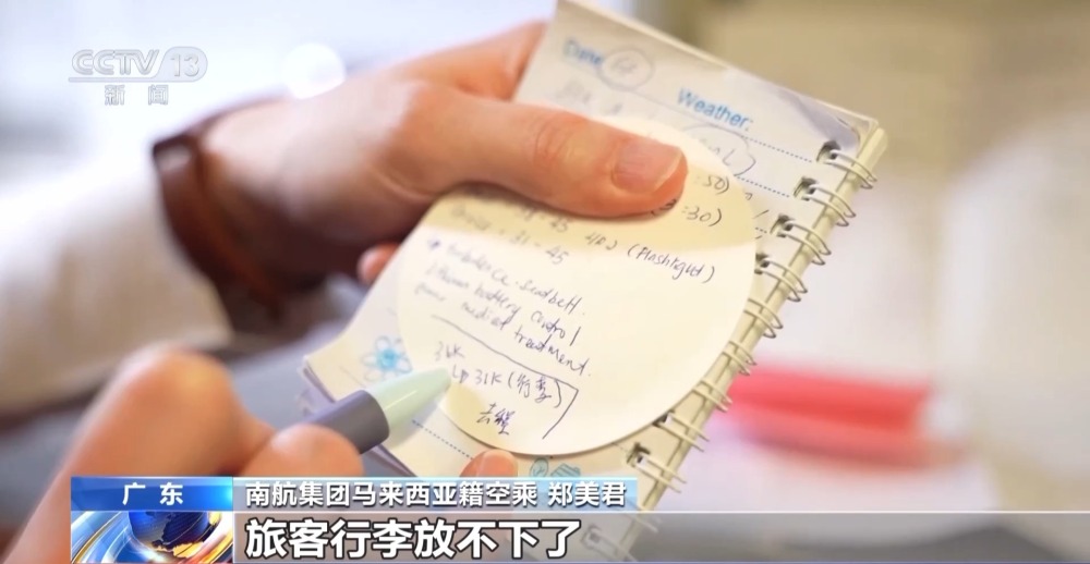 南航集團(tuán)馬來西亞籍空乘 黃佩儀:現(xiàn)在又到了春運(yùn)的時(shí)期,我們領(lǐng)資料箱的時(shí)候,特地問一下能不能多給我們兩包,盡量保證每個(gè)睡覺的旅客,前面都有這樣一個(gè)小紙貼。