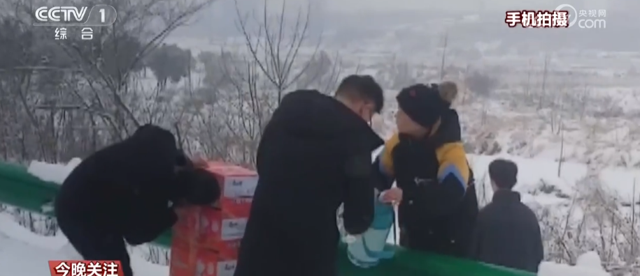 同樣的故事,在一條條受雨雪冰凍天氣影響的回家路上接連上演。在湖北仙桃,滬渝高速三伏潭段的積雪結冰嚴重。不少過往車輛滯留在高速公路沿線。當?shù)卮迕褚沧园l(fā)地為滯留群眾提供各種幫助。