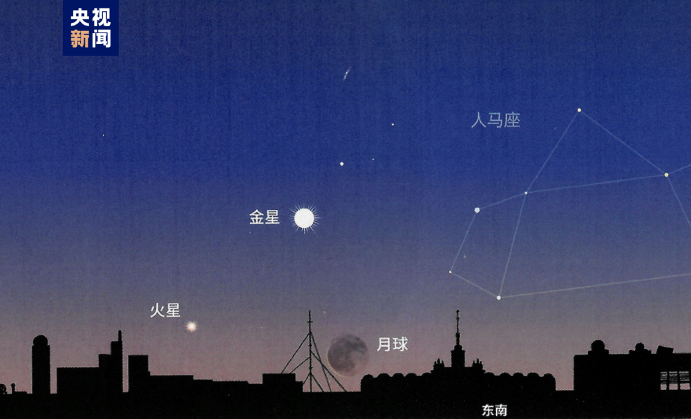 記者從北京天文館獲悉,北京時(shí)間2月8日清晨,金星、火星和月亮將在東南方低空上演“雙星伴月”天象。