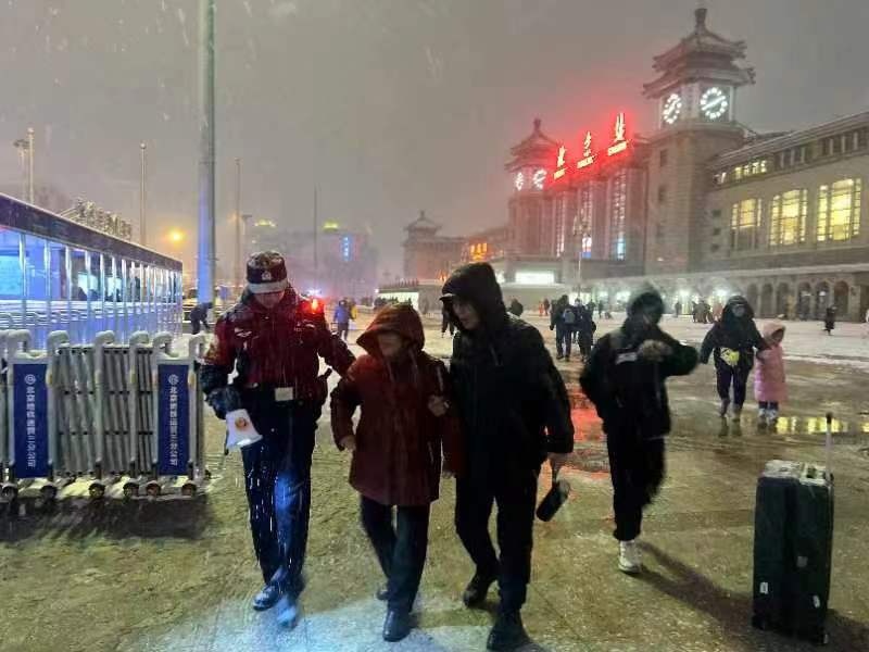 北京豐臺(tái)站地區(qū)就采取多種措施應(yīng)對(duì)極端低溫天氣,服務(wù)好春運(yùn)返程夜間集中大客流。增加與鐵路會(huì)商頻度,落實(shí)每半小時(shí)溝通聯(lián)絡(luò)一次,及時(shí)準(zhǔn)確掌握列車晚點(diǎn)停運(yùn)情況,根據(jù)客流情況調(diào)整夜班公交和公交高鐵專線的保障,協(xié)調(diào)網(wǎng)約車企業(yè),保障運(yùn)力。按照“隨下隨掃”原則進(jìn)行掃雪鏟冰作業(yè),緊盯東南出站口、連廊周邊、匝道、地鐵口附近、停車場(chǎng)等重點(diǎn)區(qū)域,做好清掃、采取防滑措施并做好防滑提示。在南廣場(chǎng)和地下出租車調(diào)度站,為有需要的旅客和司機(jī)提供紅糖姜水。