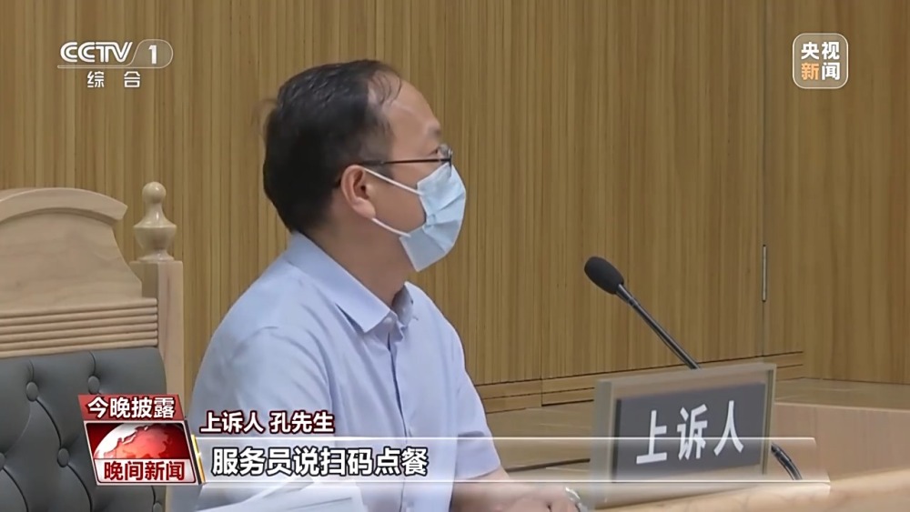 上訴人 孔先生:沒有。我再補充一下,第一次開庭完之后,他說進店之后,肯定先告訴你進行人工點餐。開完庭當(dāng)天晚上我又到店去,我全程做了錄音,我說怎么點餐,服務(wù)員說掃碼點餐。