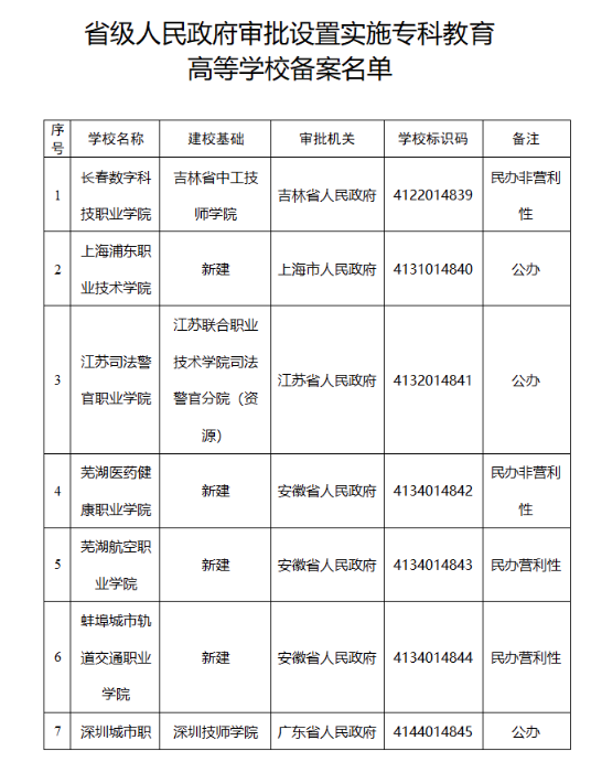 央廣網(wǎng)北京3月25日消息(記者馮儀) 近日,教育部根據(jù)《中華人民共和國高等教育法》《普通高等學校設置暫行條例》等有關法律法規(guī)和政策文件的規(guī)定,將省級人民政府審批新設的??茖哟胃叩葘W校備案名單予以公布。
