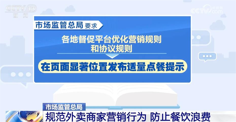 市場監(jiān)管總局要求各地督促平臺(tái)優(yōu)化營銷規(guī)則和協(xié)議規(guī)則,在頁面顯著位置發(fā)布適量點(diǎn)餐提示;鼓勵(lì)平臺(tái)健全激勵(lì)機(jī)制,推動(dòng)商家開發(fā)、提供、推廣小份餐品,合理設(shè)置餐品起送價(jià)格,優(yōu)化滿減湊單機(jī)制,不將主食納入滿減優(yōu)惠展示范圍,鼓勵(lì)使用食安封簽。線上線下、同頻同步開展防止餐飲浪費(fèi)與食品安全監(jiān)督檢查,持續(xù)開展“隨機(jī)查餐廳”行動(dòng)。對造成明顯浪費(fèi)、嚴(yán)重浪費(fèi)且拒不改正的,依法嚴(yán)厲處罰并公開曝光。