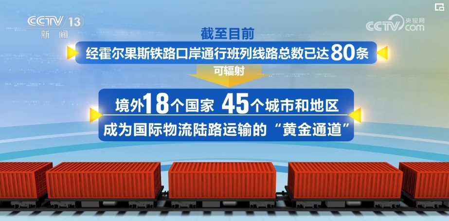 自2016年開出首趟中歐班列以來,經(jīng)霍爾果斯海關(guān)監(jiān)管的中歐(中亞)班列總量已超過3.5萬列。截至目前,經(jīng)霍爾果斯鐵路口岸通行班列線路總數(shù)已達(dá)80條,可輻射境外18個(gè)國(guó)家、45個(gè)城市和地區(qū),成為國(guó)際物流陸路運(yùn)輸?shù)摹包S金通道”。